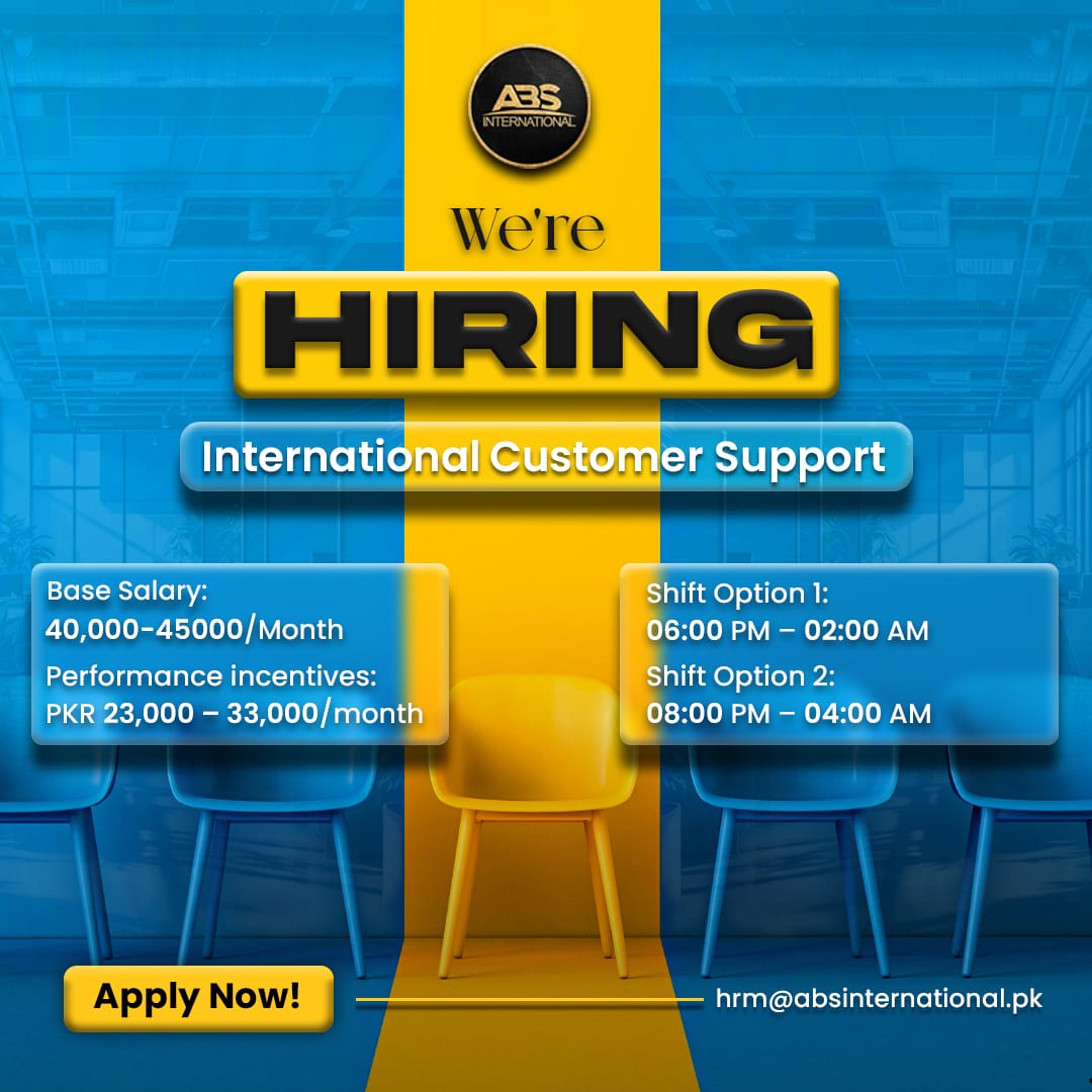 Night-shift Customer Support (International) — Gulistan-e-Johar. Base PKR 40k–45k + incentives.